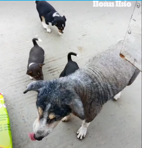M0801024 A mother dog leads her puppies wandering around begging for food, but all they receive is rejection along the way.